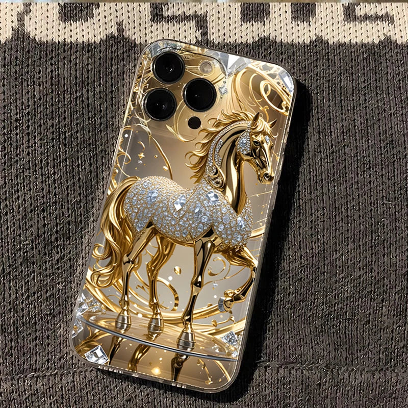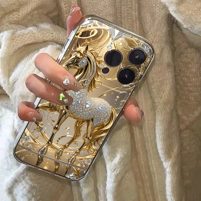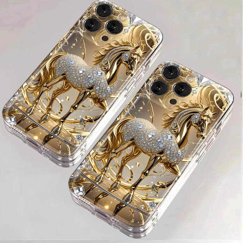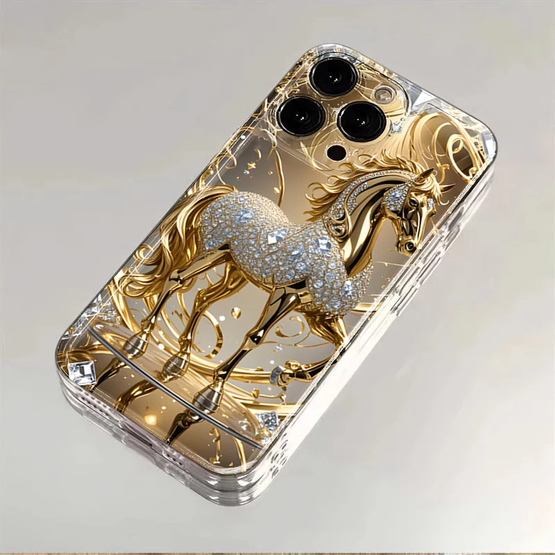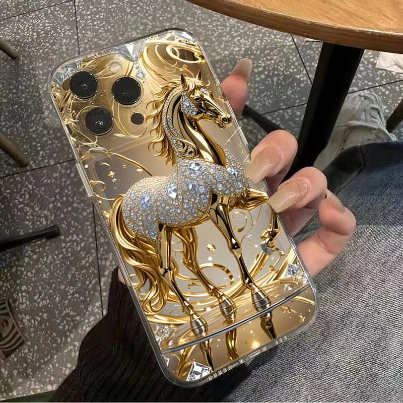 Esta capa não é apenas um acessório: é uma peça de estilo. O cavalo dourado traz um brilho sofisticado que transforma seu celular em um item de moda. Ideal para mulheres que apreciam detalhes luxuosos e desejam se destacar com elegância.