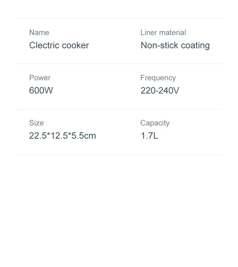 - Tipo: mini panela elétrica de arroz / multifuncional